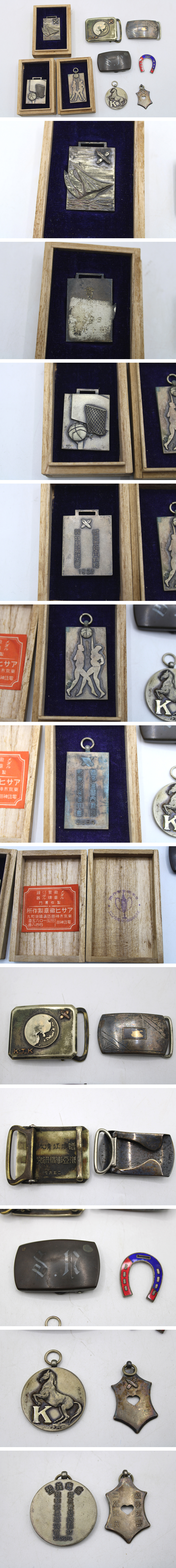 【貴重品】戦前「慶応義塾大学 バックルやバッジまとめてセット」記念章 慶應 籠球部 ヨット部 競技馬術 慶應グッズ